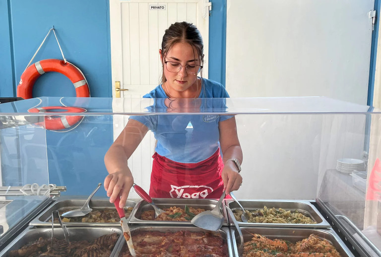 La sala ristorante è vista mare e offre un menù a scelta con i migliori piatti della cucina regionale italiana. Potrai assaporare piatti a base di carne e pesce, buffet degli antipasti ricchi e assortiti, freschi buffet di verdure e dolci fatti in casa; le bevande ai pasti sono comprese nel prezzo.