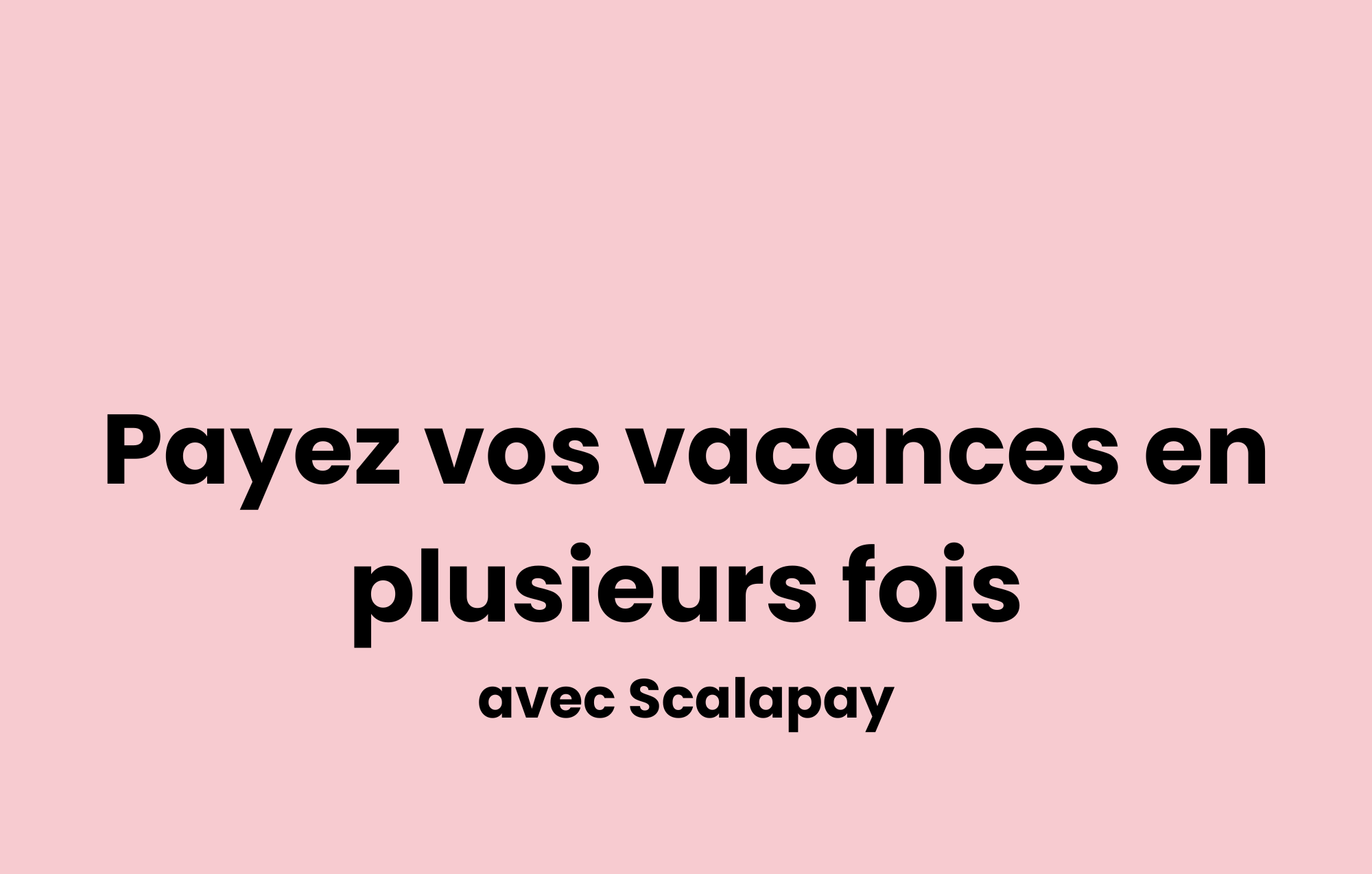 1. Payer les arrhes en plusieurs fois avec Scalapay + solde en une seule fois à l’hôtel